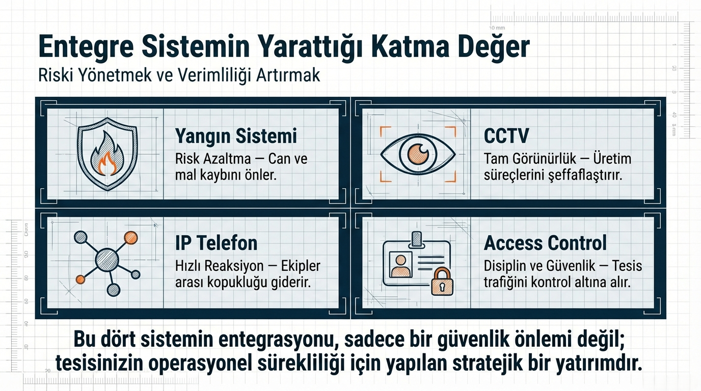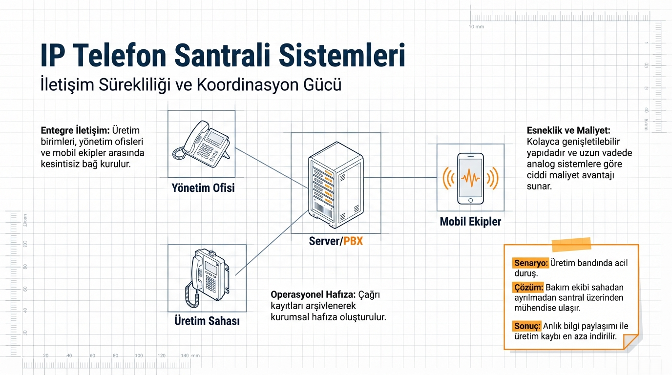 Üretim tesislerinde iletişim sürekliliği operasyonel başarı için kritik önemdedir. Bu sistemlerle: