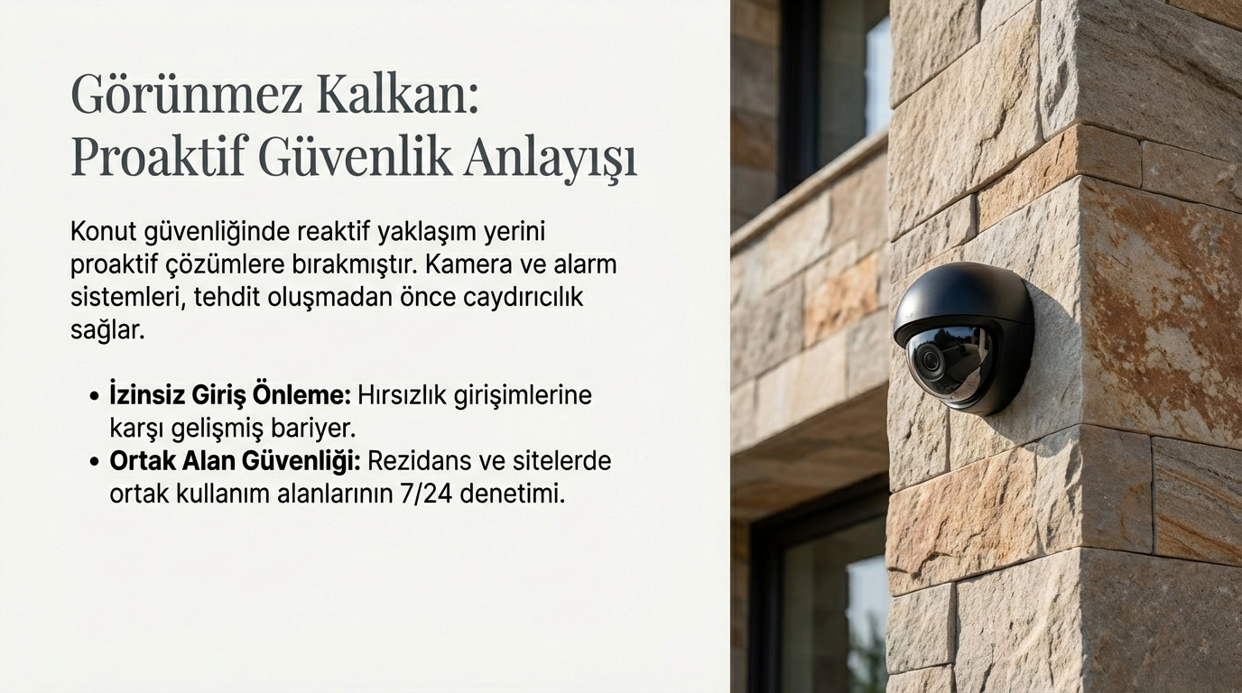 Konut güvenliğinde kamera ve alarm sistemleri önemli bir rol oynar. Bu sistemlerle: